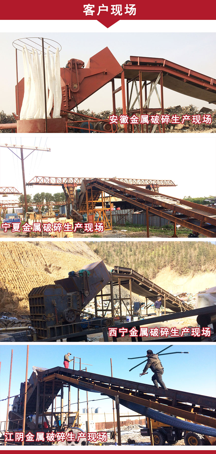 鋁合金破碎機(jī)的錘頭,在高速電機(jī)的帶動下依靠動力勢能及電力提供的動力,打擊廢舊金屬材料,整個過程破碎效率高,破碎強(qiáng)度大,可用于破碎抗壓強(qiáng)度在147~230MPa的各種金屬和鐵罐的粗碎、中碎。在粉碎過程中,金屬料隨錘頭的快速運(yùn)轉(zhuǎn)使粉碎金屬料跟錘頭一塊旋轉(zhuǎn),經(jīng)過短時間內(nèi)捶打搓團(tuán),成品顆粒從底部篩板流出,在物料流出的同時通過除塵器降塵除雜,使流出金屬顆粒干凈。底部為斜板式下料結(jié)構(gòu),出料快,不存料,不堵塞。鋁合金破碎機(jī)出來的破碎物料,再經(jīng)過振動輸送機(jī)、皮帶輸送機(jī)、磁力分選系統(tǒng),把鐵和有色金屬物和非金屬物分離開,并由各自輸送機(jī)送出來歸堆。